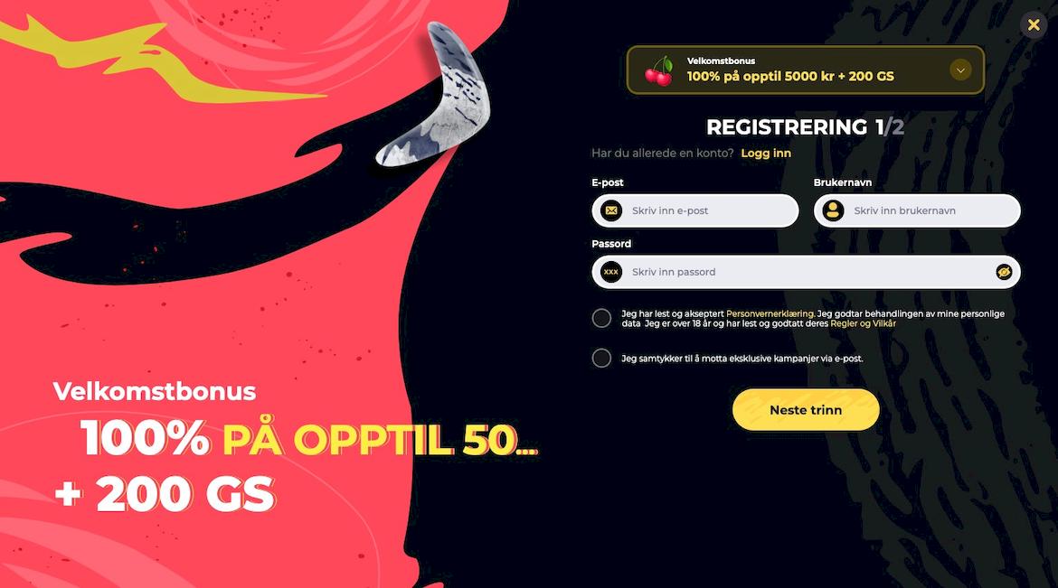 Før du kan begynne å spille hos Boomerang er du nødt til å opprette en spillerkonto. Har du 5 minutter ledig nå så skal vi forklare deg prosessen fra A til Å for å begynne å spille: